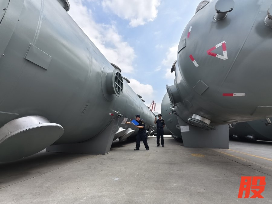 上海吴淞海关对出口至共建“一带一路”国家的大型设备进行现场监管。(路慎利摄)