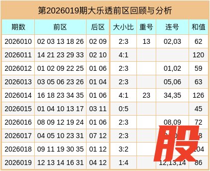 当期前区号码大小比为1:4,三区比为1:3:1,奇偶比为2:3。